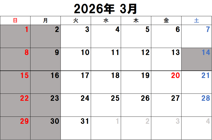 営業日カレンダー