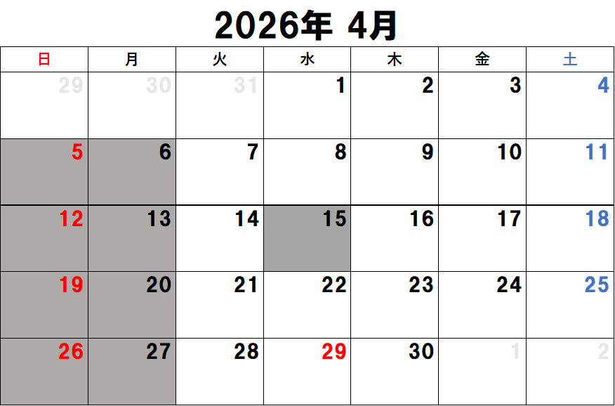 営業日カレンダー